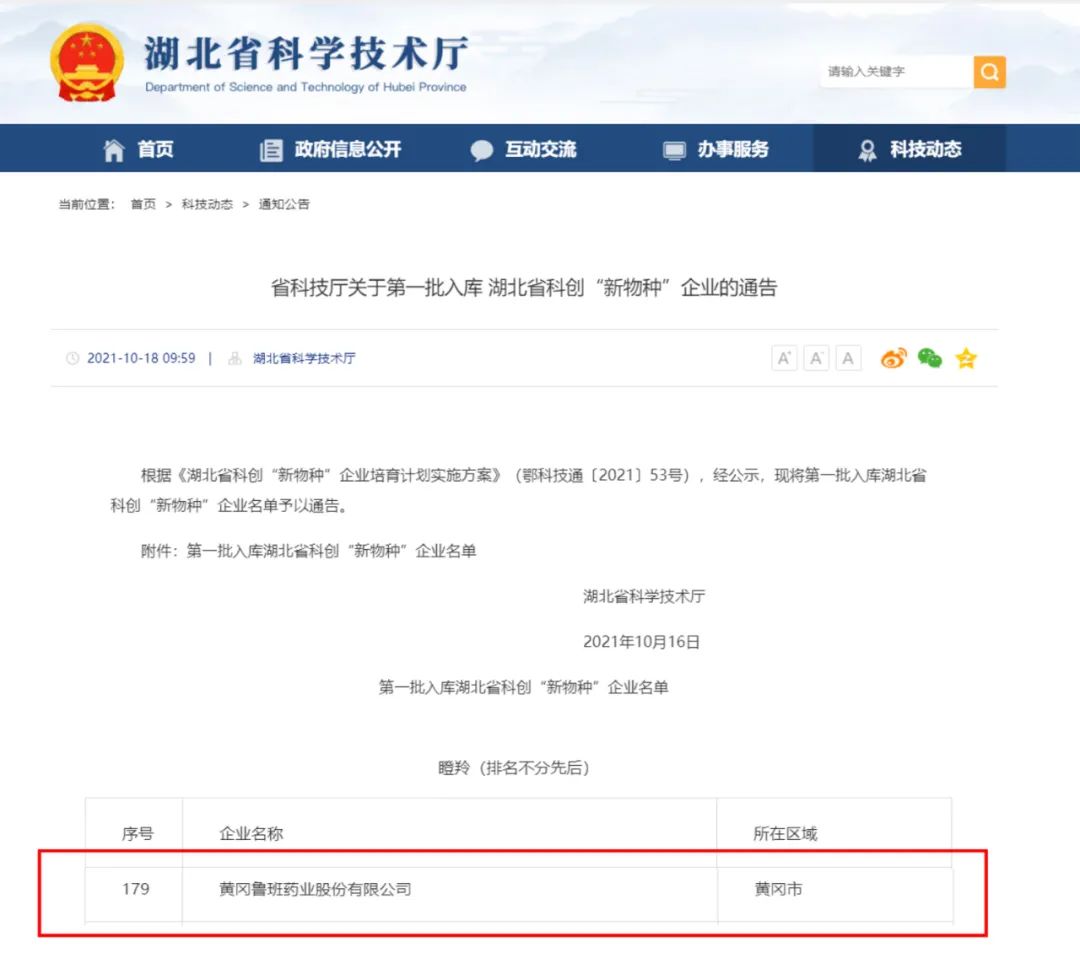 黃岡魯班藥業(yè)股份有限公司入選第一批入庫湖北省科創(chuàng)“新物種”企業(yè)名單